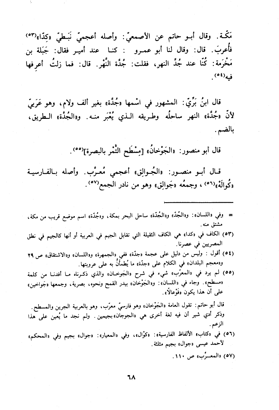مَكَّة وَقَالَ أَبُو حَاتِم عَن الْأَصْمَعِي وَأَصله أعجمي نبطي كدا فأعرب قَالَ وَقَالَ لنا أَبُو عَمْرو كُنَّا عِنْد أَمِير فَقَالَ جبلة بن مخرمَة كُنَّا عِنْد جد النَّهر فَقلت جدة النَّهر قَالَ فَمَا زلت أعرفهَا فِيهِ