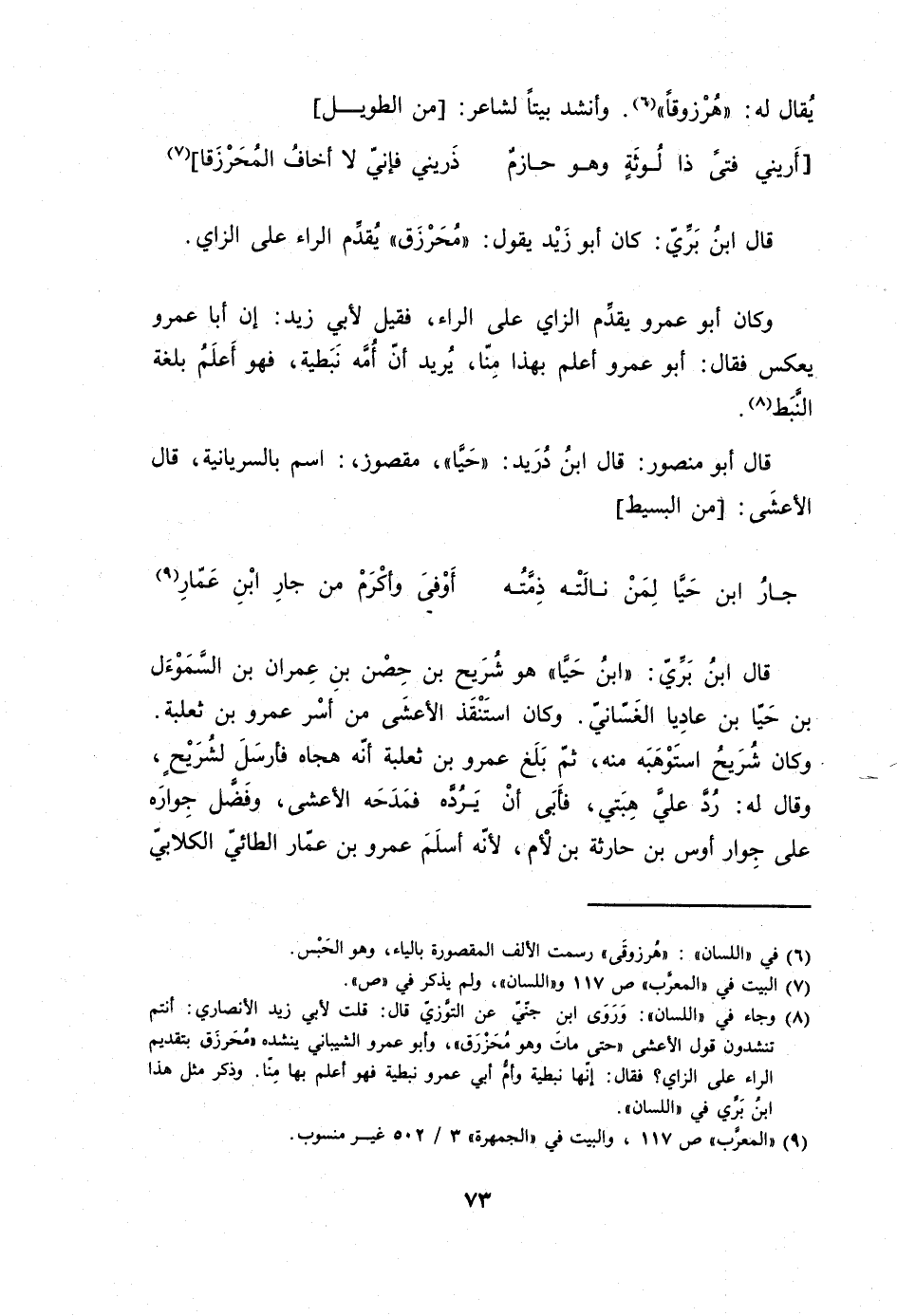 قَالَ ابْن بري كَانَ أَبُو زيد يَقُول محرزق يقدم الرَّاء على الزَّاي