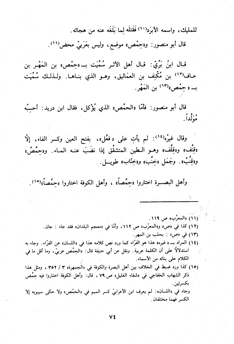 قَالَ أَبُو مَنْصُور وحمص مَوضِع وَلَيْسَ بعربي مَحْض