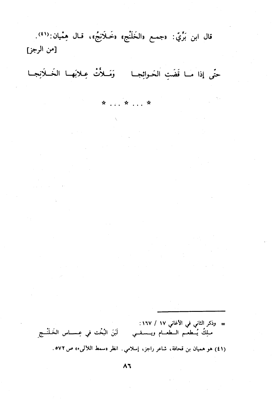 (حَتَّى إِذا مَا قَضَت الحوائجا ... وملأت علابها الخلانجا) // من الرجز //