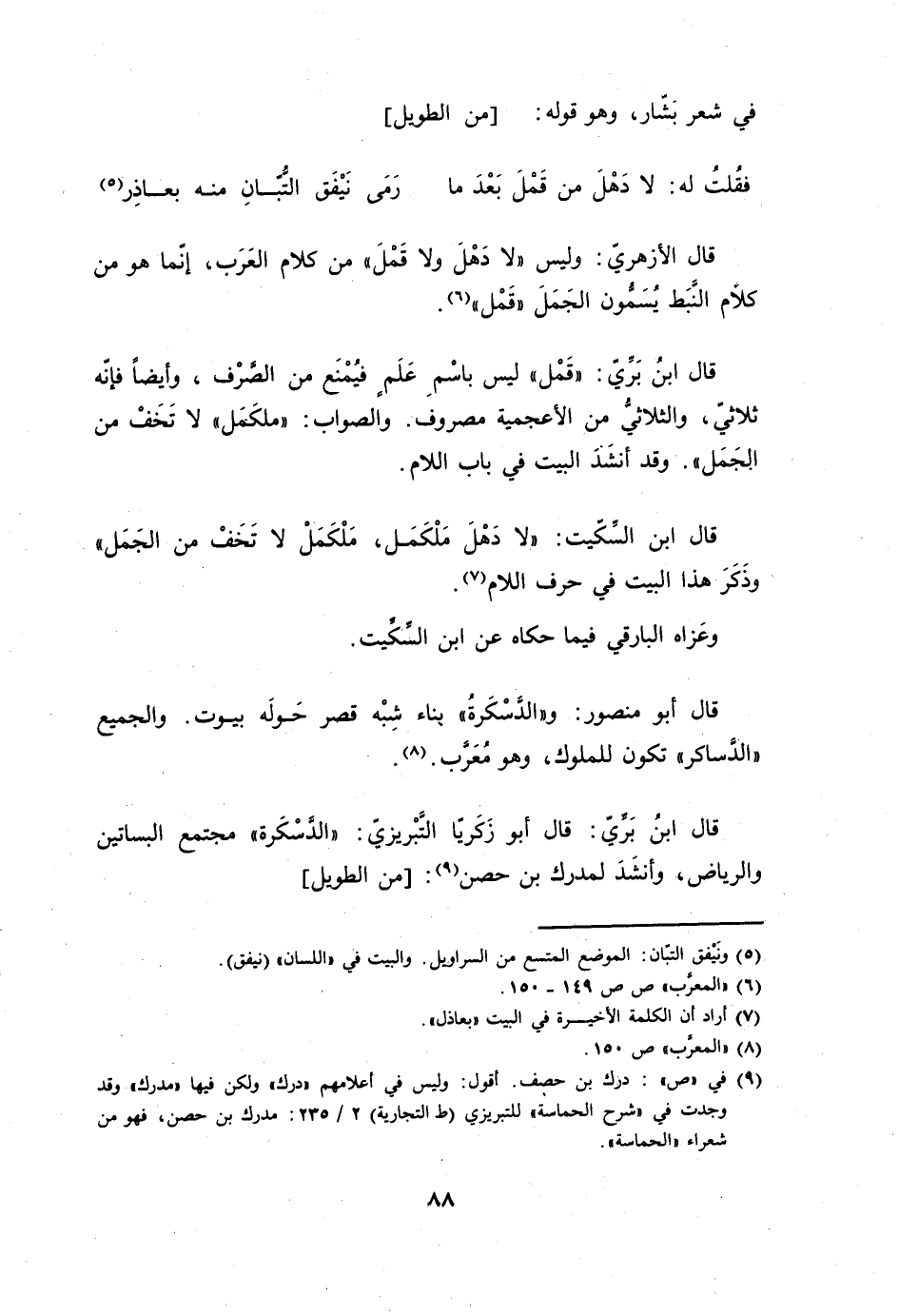 قَالَ الْأَزْهَرِي وَلَيْسَ لَا دهل وَلَا قمل من كَلَام الْعَرَب إِنَّمَا هُوَ من كَلَام النبط يسمون الْجمل قمل
