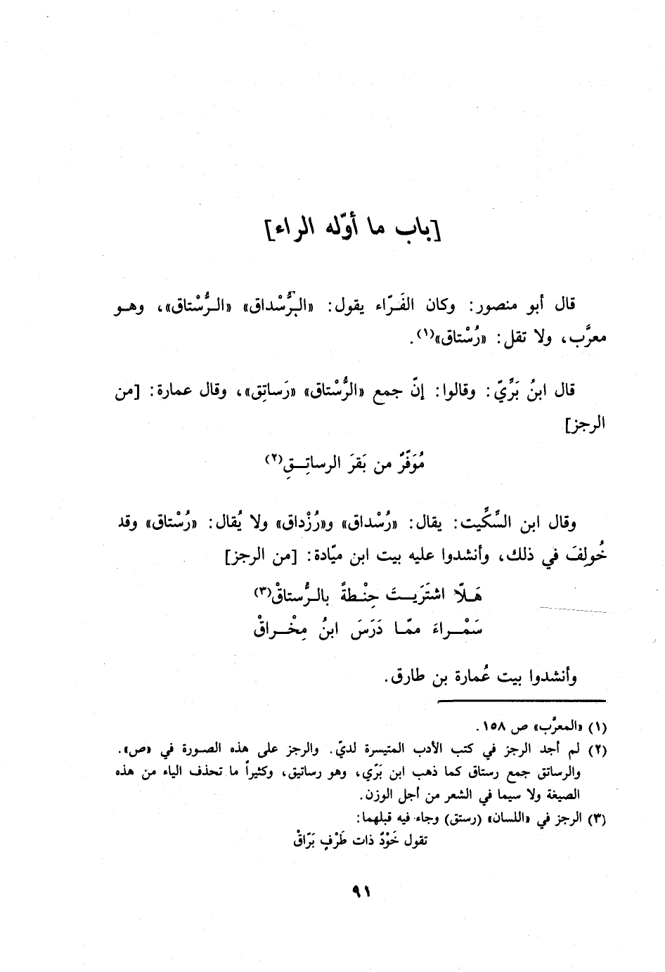 قَالَ أَبُو مَنْصُور وَكَانَ الْفراء يَقُول الرسداق الرستاق وَهُوَ مُعرب وَلَا تقل رستاق