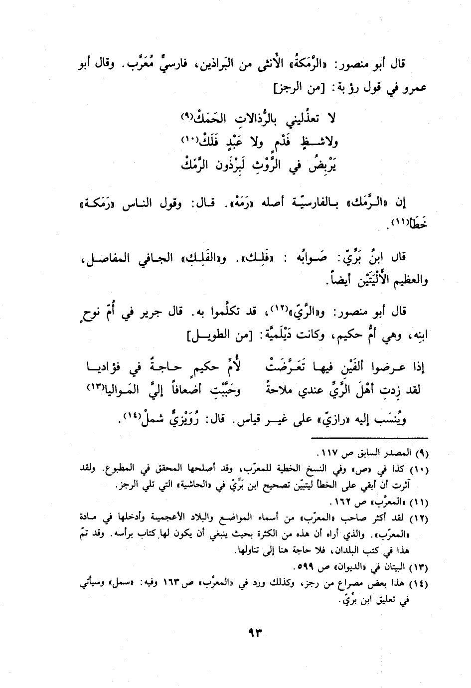 قَالَ أَبُو مَنْصُور والري قد تكلمُوا بِهِ قَالَ جرير فِي أم نوح ابْنه وَهِي أم حَكِيم وَكَانَت ديليمة