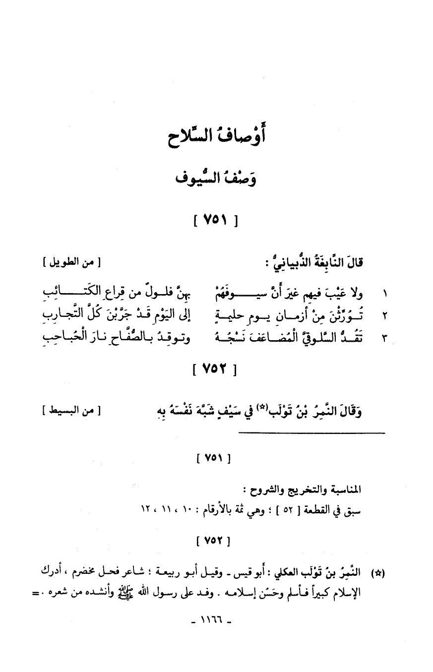 وَقَالَ النَّمُرِ بْنُ تَوْلَب فِي سَيْفٍ شَبَّةَ نَفْسَهُ بِهِ // (من الْبَسِيط) //