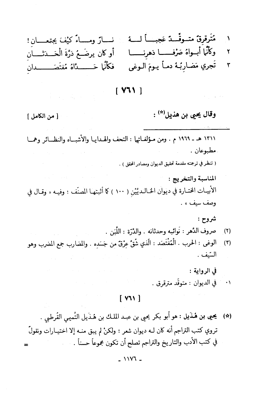 وَقَالَ يحيى بن هُذَيْل // (من الْكَامِل) //