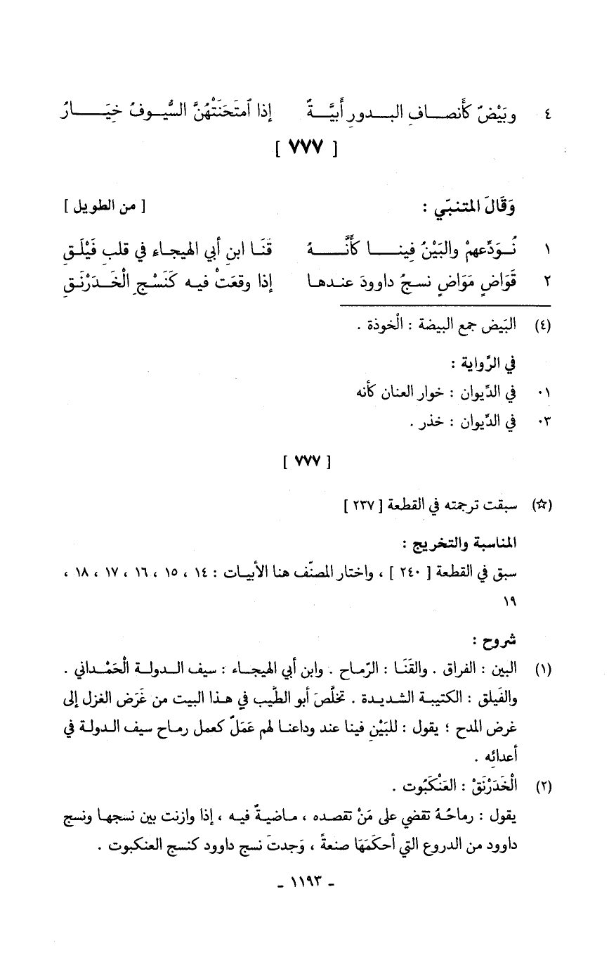 وَقَالَ المتنبّي // (من الطَّوِيل) // 1.