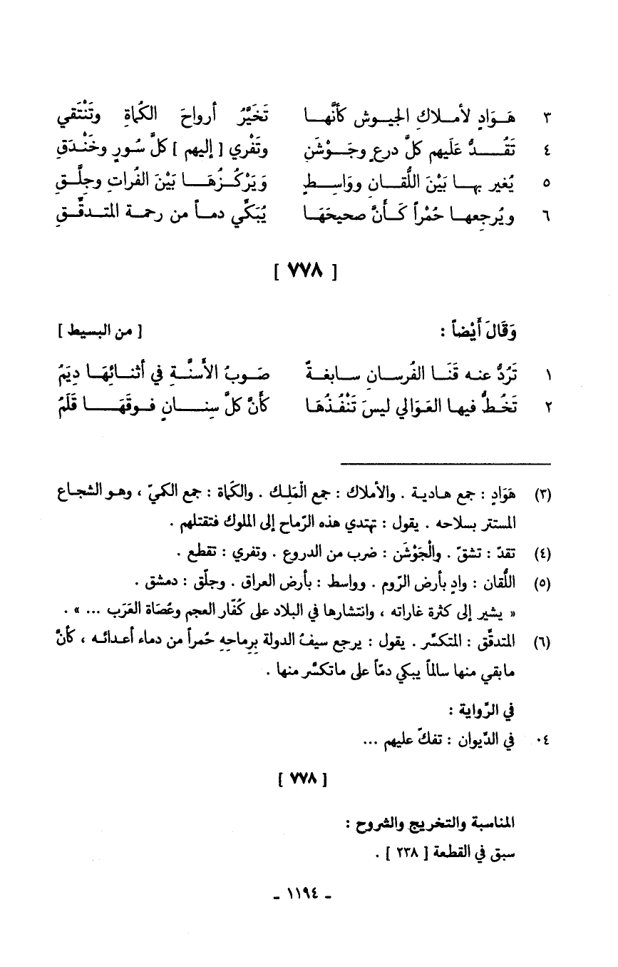 (هَوَادٍ لأملاكِ الجيوش كأنَّها ... تَخَيَّرُ أرواحَ الكُماةِ وتَنْتَقي)