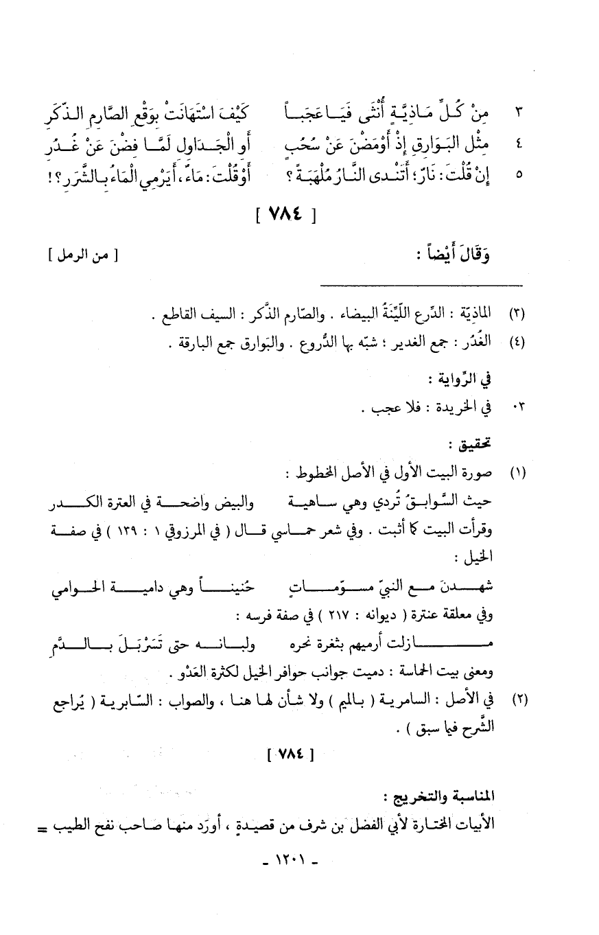 (مِنْ كُلِّ مَاذيَّةٍ أُنْثَى فَيَا عَجَباً ... كَيْفَ اسًتَهَانَتْ بِوَقْعِ الصَّرِم الذّكر)