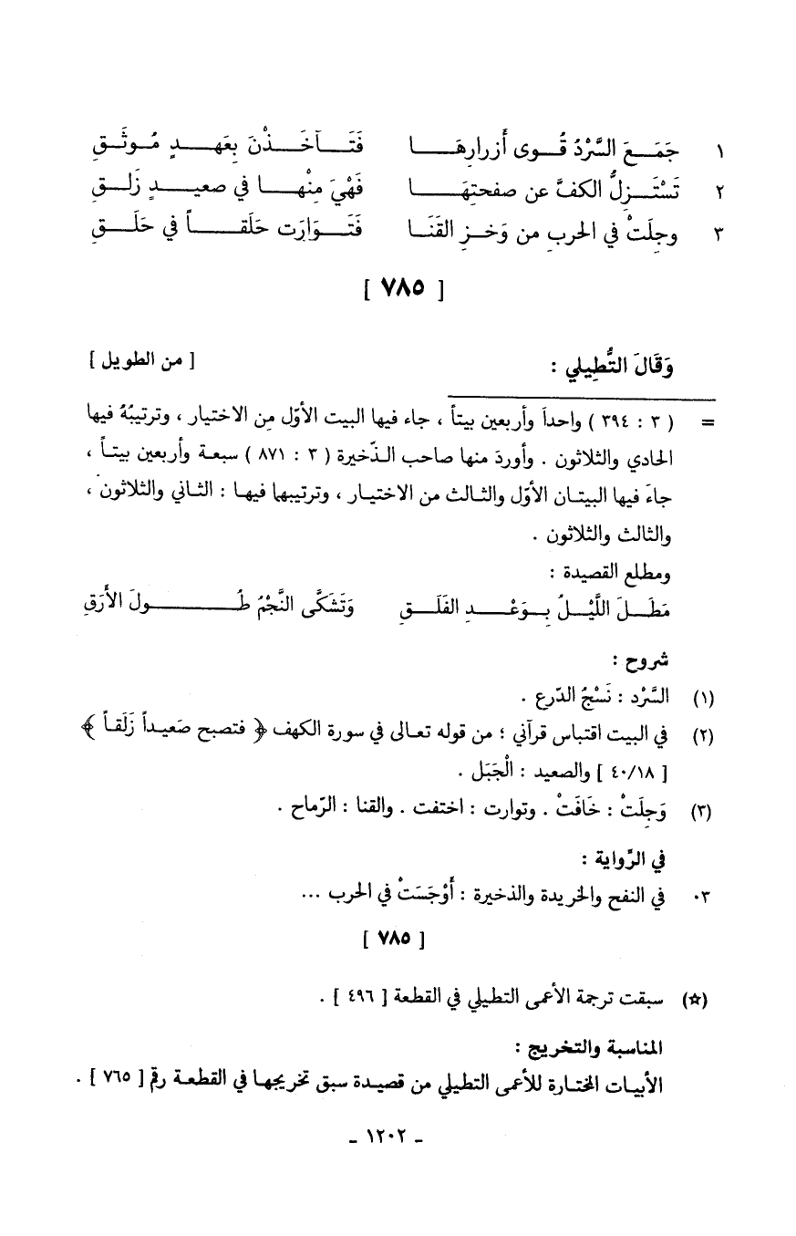 (جَمَعَ السَّرْدُ قُوى أَزرارِها ... فَتَآخَذْنَ بِعَهدٍ مُوثَقَ)
