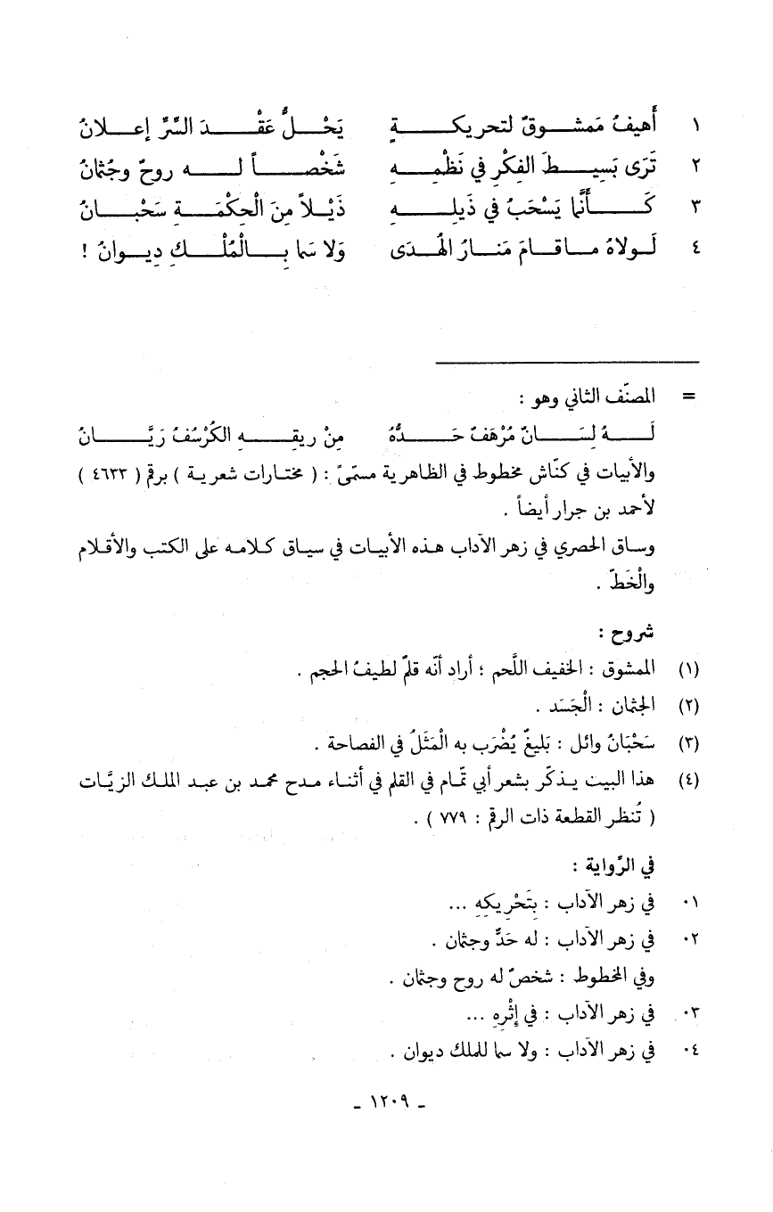 (تَرَى بِسِيطَ الفِكْرِ فِي نَظْمِهِ ... شخصْاً لَهُ روحٌ وجُثمانُ)
