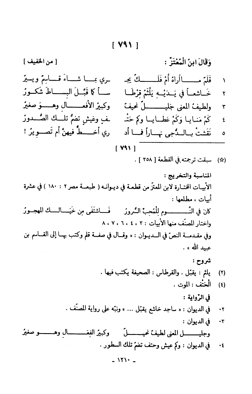 وَقَالَ ابنُ الْمُعْتَزِّ // (من الْخَفِيف) // 1.