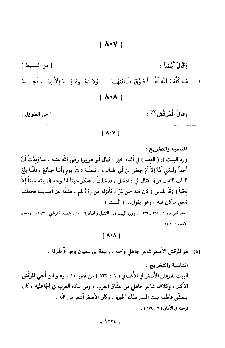 (مَا كَلَّفَ الله نَفْسا فَوْقَ طَاقَتِهَا ... وَلا تَجُودُ يَدْ إلاَّ بَمَا تَجِدُ)