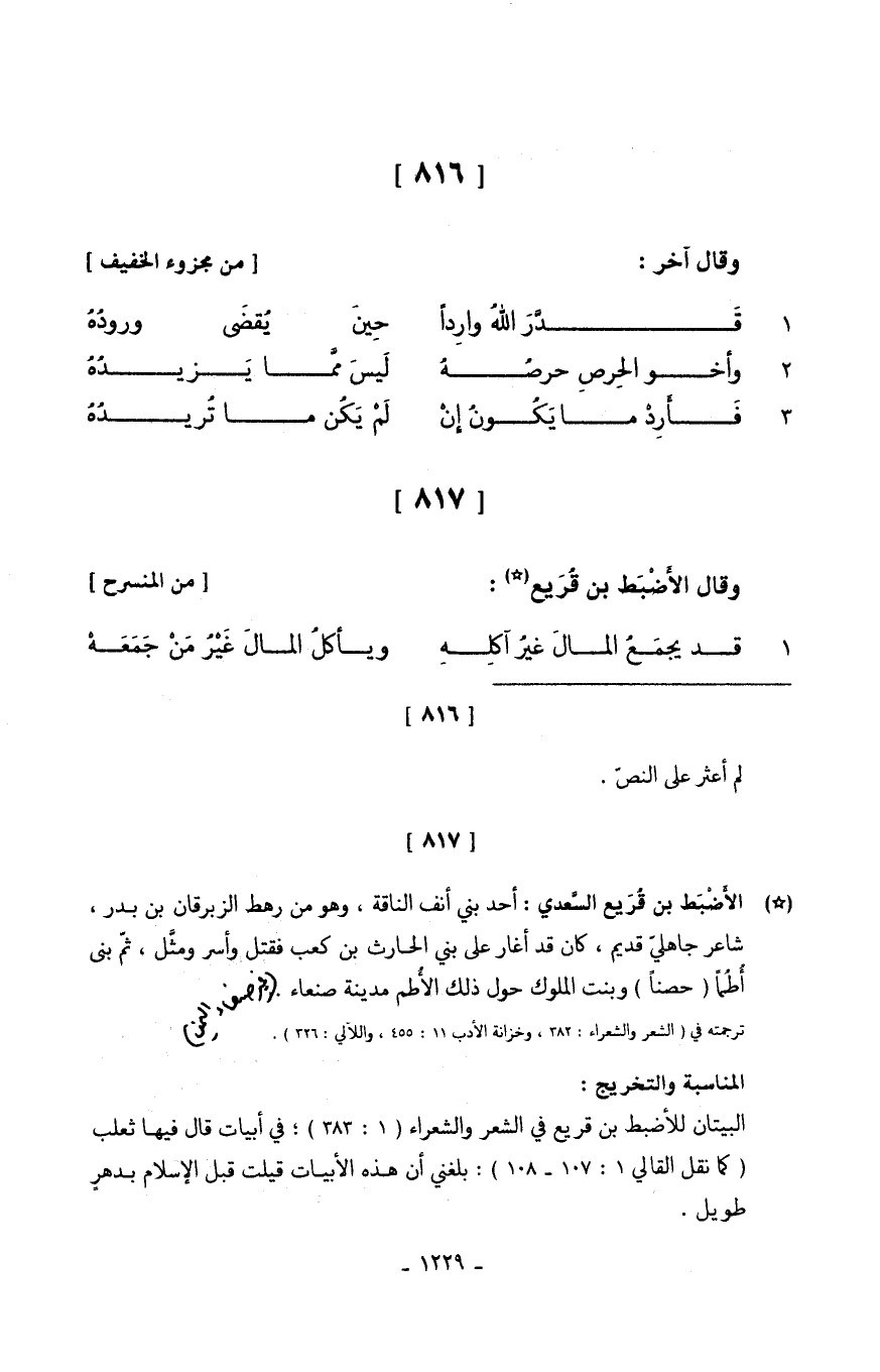 وَقَالَ الأَضْبَط بن قُرَيع // (من المنسرح) // 1.