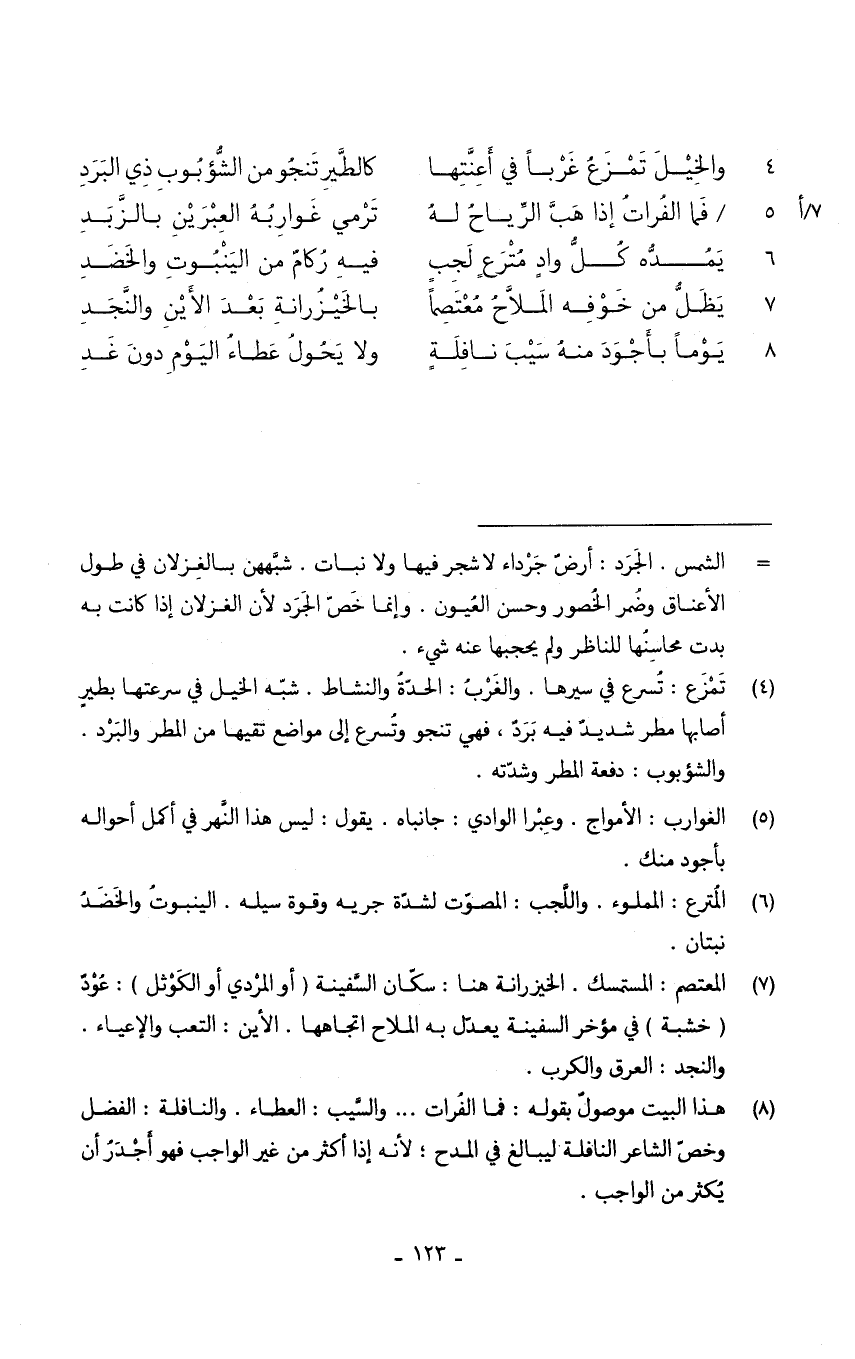 (وَالْخَيْل تمزع غرباً فِي أعنتها ... كالطير تنجو من الشؤبوب ذِي الْبرد)