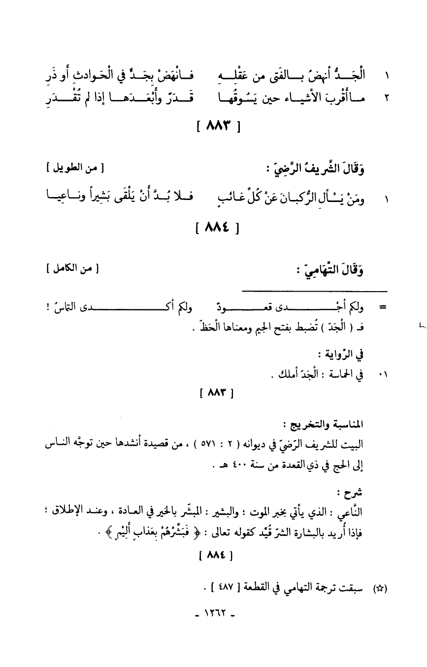 وَقَال الشَّريفُ الرَّضي // (من الطَّوِيل) // 1.