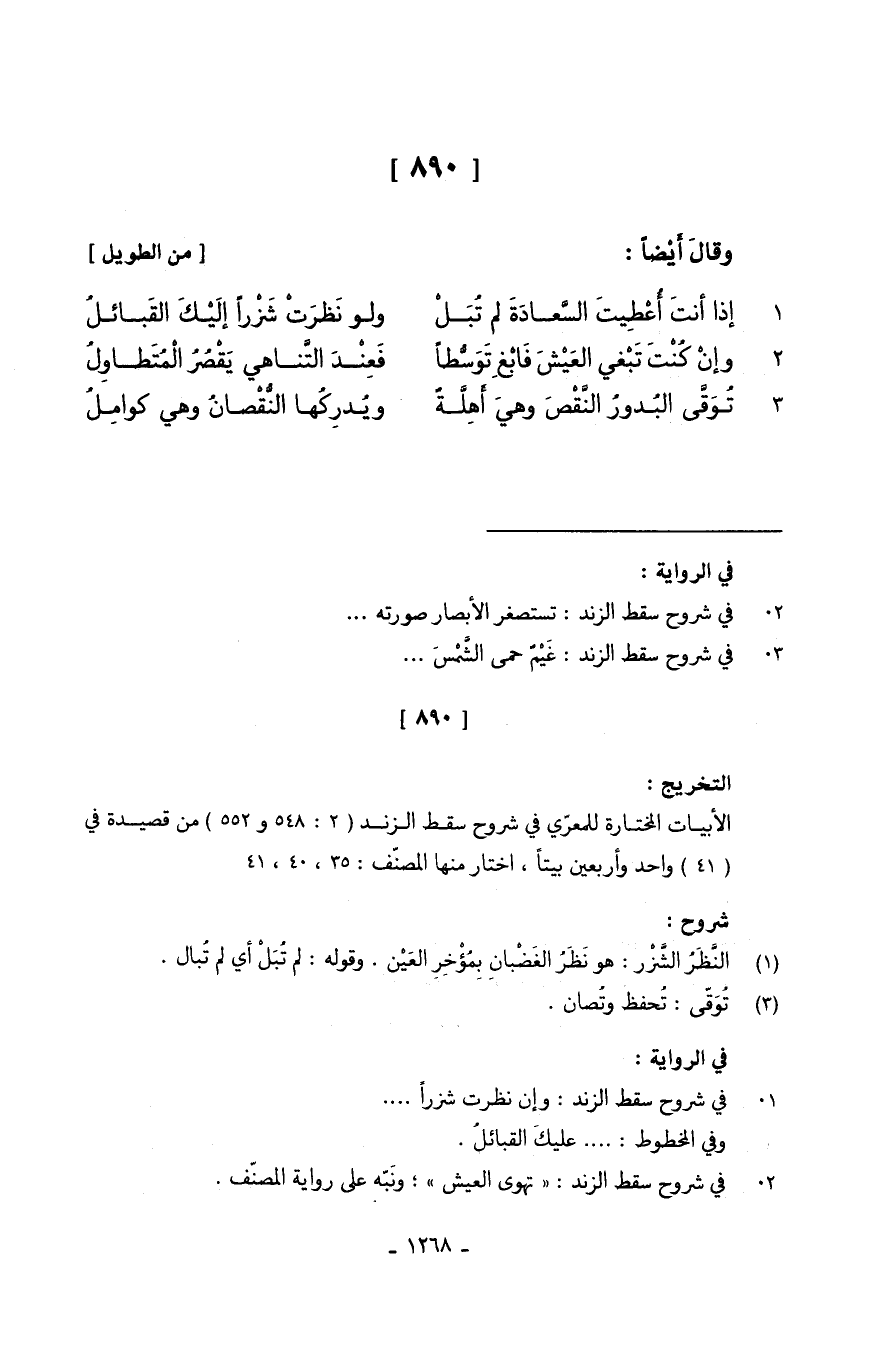 (تُوٌ قَّى البُدورُ النَّقْصَ وهيَ أَِهِلَّةٌ ... ويدُرِكُها النُّقْصانُ وَهِي كوامِلُ)