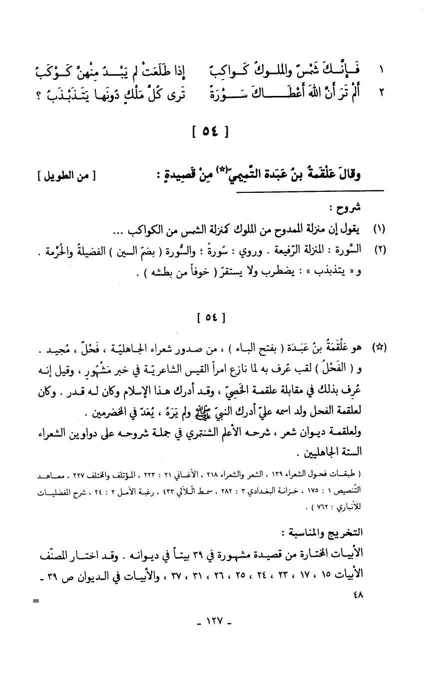 وَقَالَ عَلْقَمَة بن عَبدة التَّمِيمِي من قصيدةٍ // (من الطَّوِيل) //