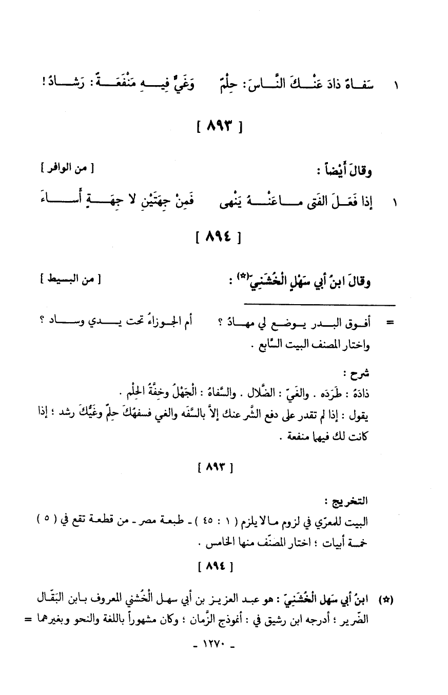 وقالَ ابنُ أبي سَهْلٍ الْخُشَنِيّ // (من الْبَسِيط) //