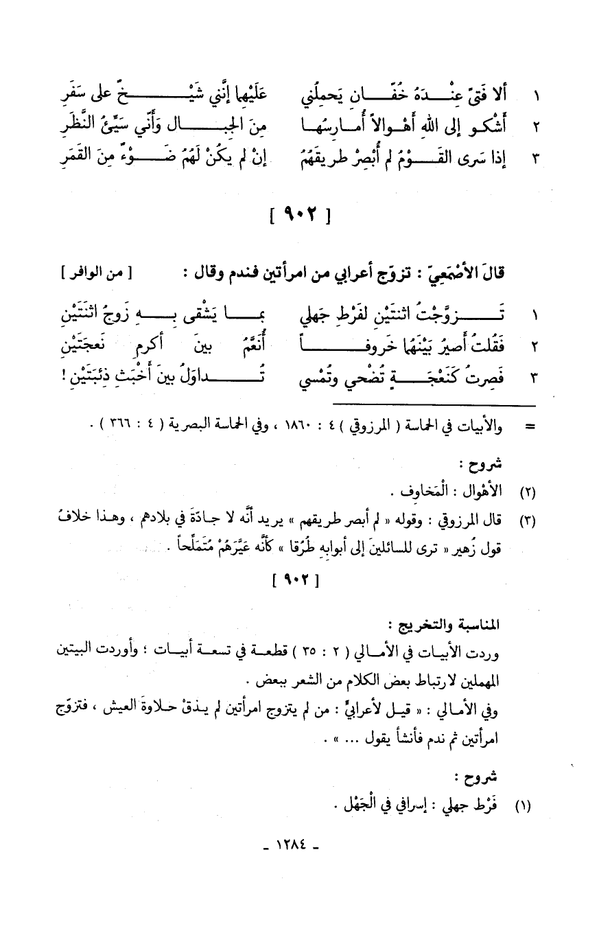 قالَ الأصْمَعِيّ تزوّج أَعْرَابِي من امْرَأتَيْنِ فندم وَقَالَ // (من الوافر) // 1.