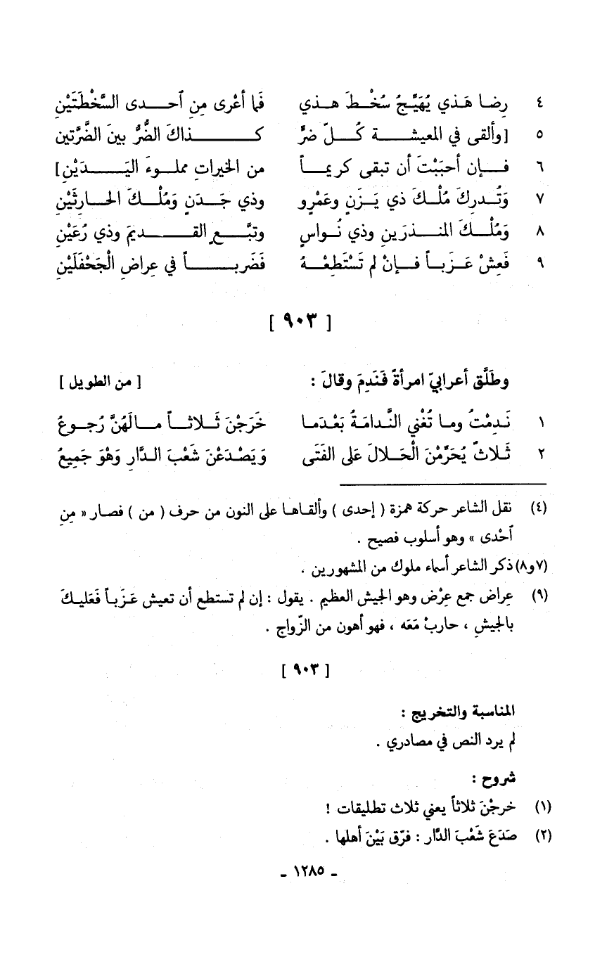 وطَلَّق أعرابيّ امْرَأَة فَنَدِم وقالَ // (من الطَّوِيل) // 1.