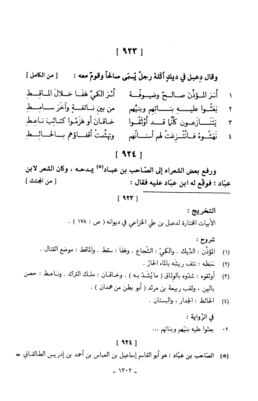 وَقَالَ دِعبل فِي ديكٍ أكَلهُ رجلٌ يُسمّى صَالحا وقومٌ مَعَه // (من الْكَامِل) // 1.