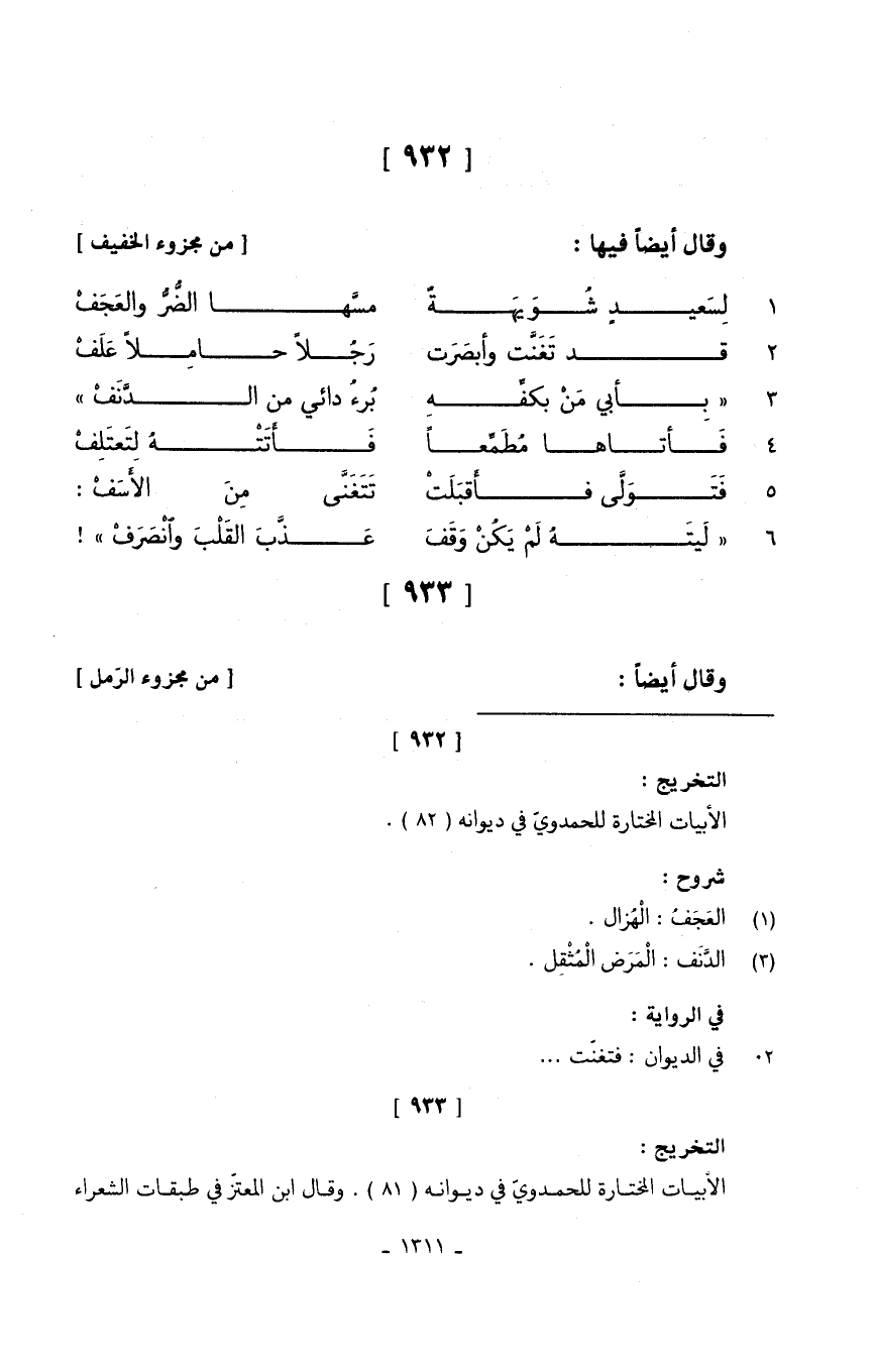 (لِسَعيدٍ شُوَيَهةُ ... مسَّها الضُّرُّ والعَجَفْ)