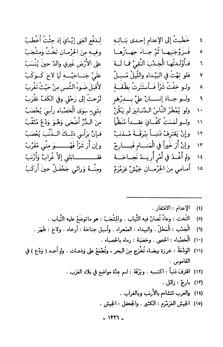 (خَطَبتُ إِلَى الإعدام إِحْدَى بَنابِهِ ... لِدَفْعِ الغِنى إيَّايَ إِذْ جِئْتُ أَخْطبُ)