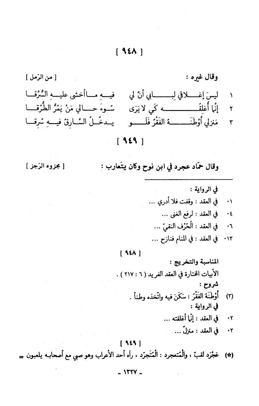 (مَنزلي أَوْطَنَه الفَقْرُ فَلَو ... يدخُلُ السَّارِقُ فيهِ سُرِقا)