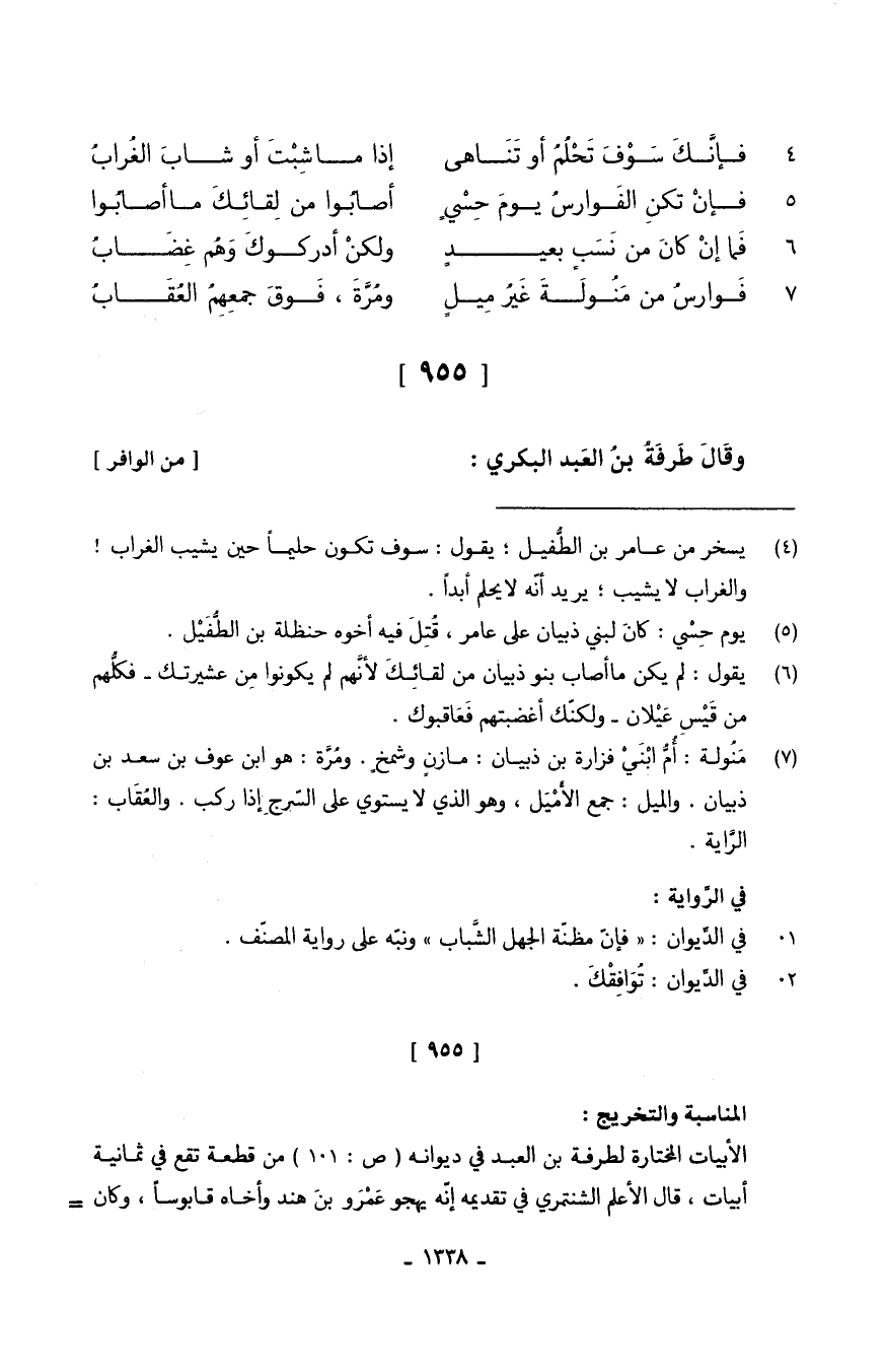 [955] وقَالَ طَرفَةُ بنُ العَبد الْبكْرِيّ // (من الوافر) //