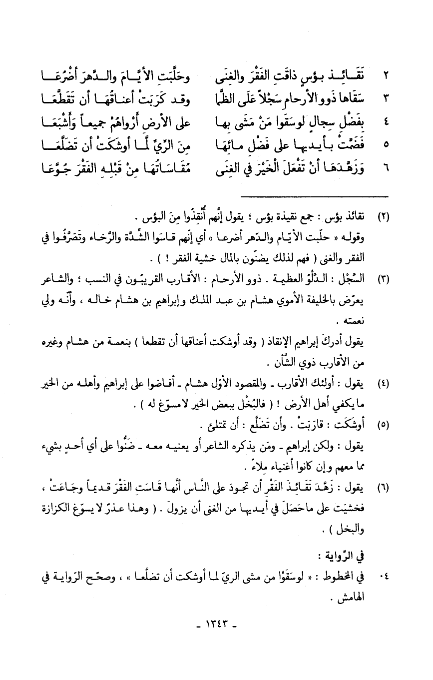 (تَقائِد بؤسٍ ذاقَتِ الفَقْرَ والغِنَى ... وحَلَّبَت الأيَّامَ والدَّهرَ أضْرُعَا)