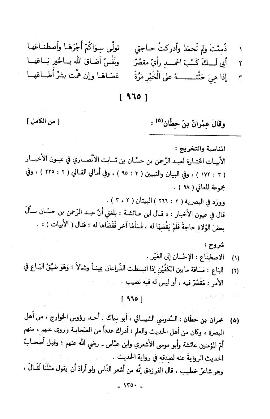 [965] وقَالَ عِمْرانُ بنَ حِطَّان // (من الْكَامِل) //