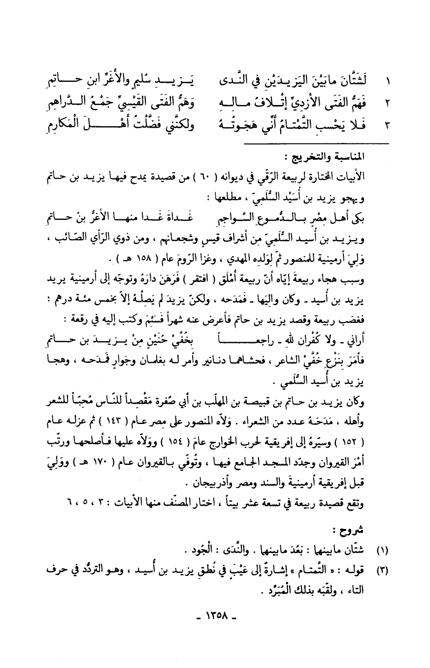 (لَشَتَّانَ مَا بَيْنَاليَزيدَيْنِ فِي النَّدى ... يَزيد سُليمٍ والأَغَرِّابنِ حاتِم)