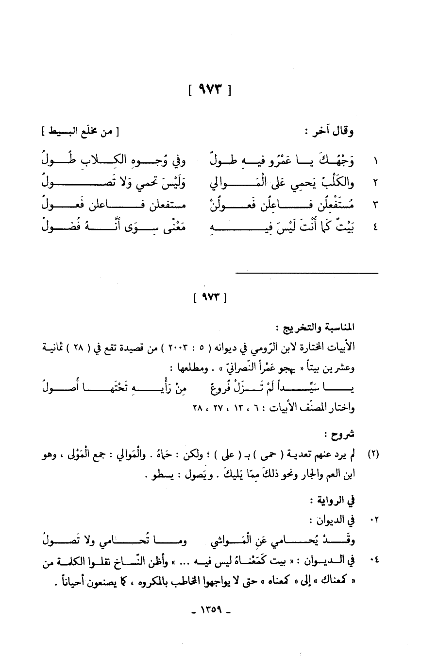 (بَيْتٌ كَما أَنْتَ لَيْسَ فِيه ... مَعْنًى سِوَى أنَّهُ فُضولُ)