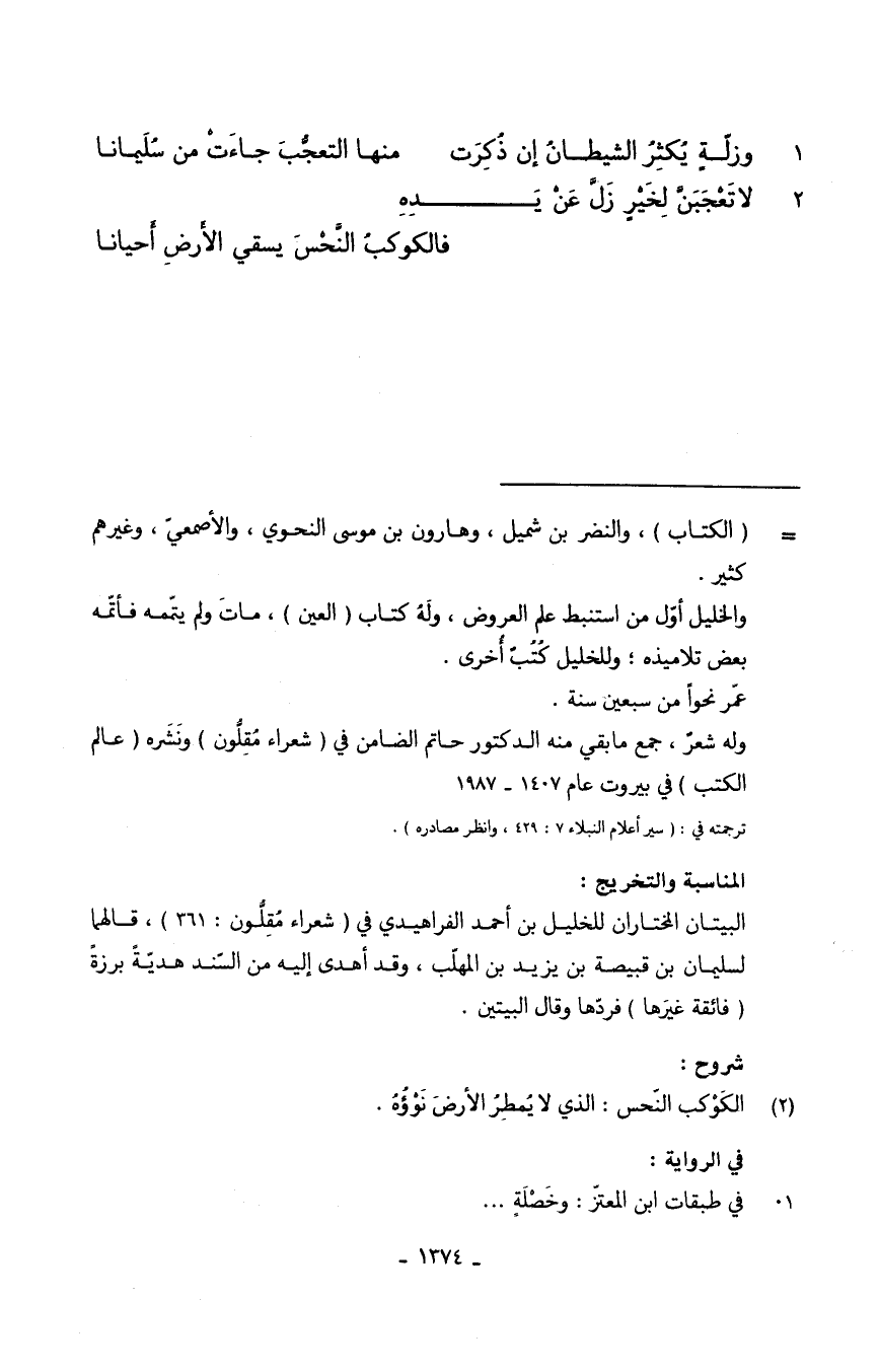 (وزلّةٍ يُكثِرُ الشيطانُ إِلَى ذُكِرَت ... مِنْهَا التعجُّبَ جاءَتْ من سُلِيمانا)