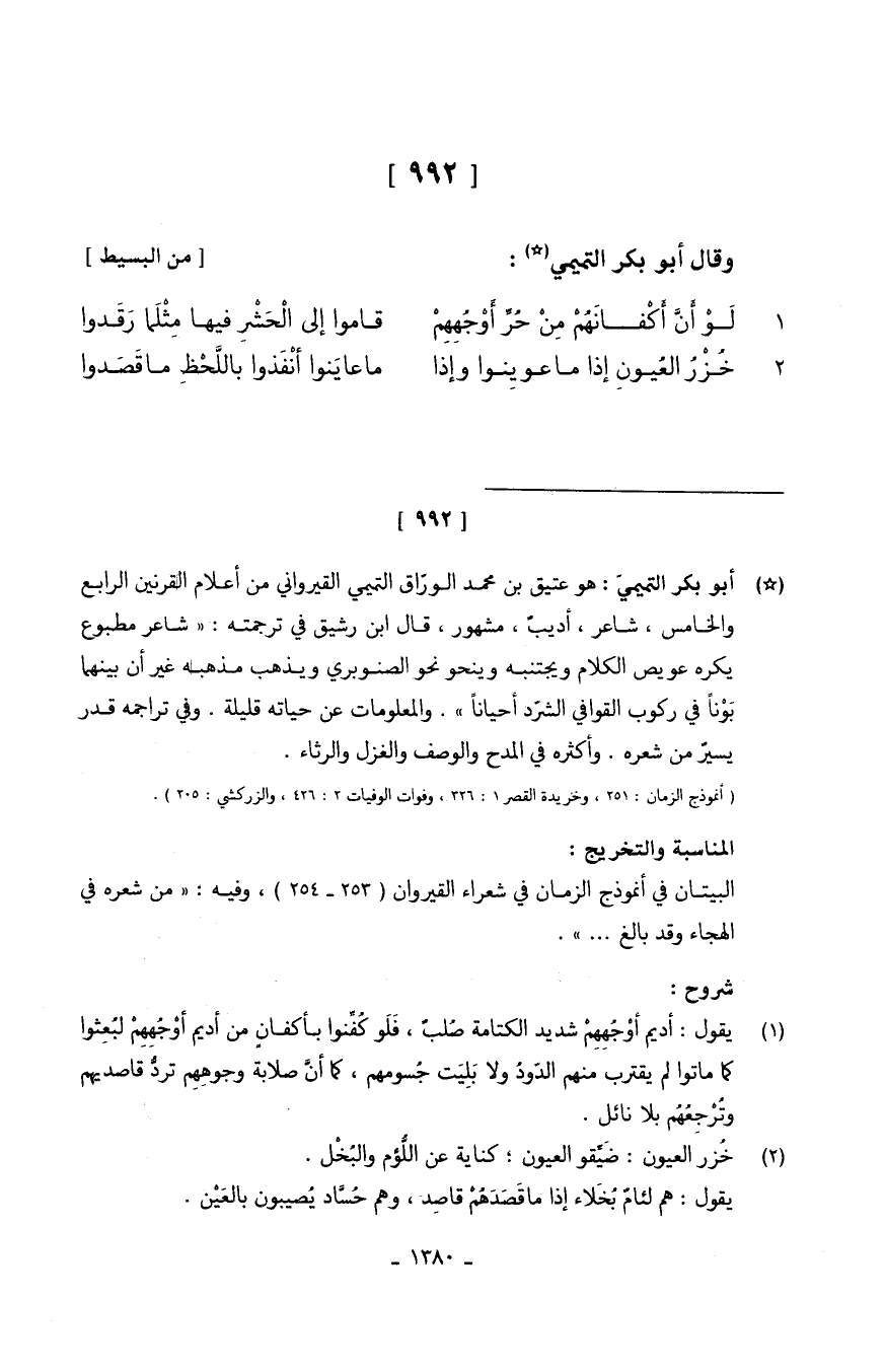 وَقَالَ أَبُو بكر التَّمِيمِي // (من الْبَسِيط) // 1.