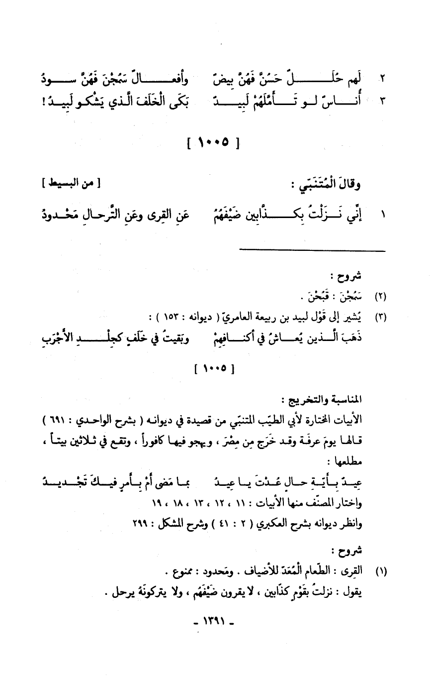 وقالَ الْمُتَنَبّي // (من الْبَسِيط) // 1.
