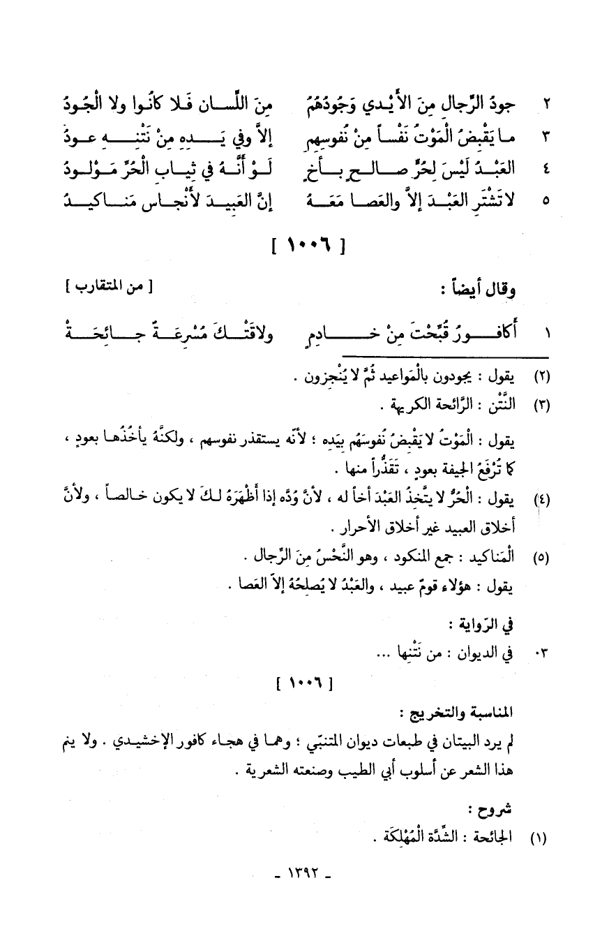 (أَكافورُ قُبِّحْتَ مٍ نْ خادِمِ ... وَلَا قَتْكَ مُسْرِعَةُ جائِحَةْ)