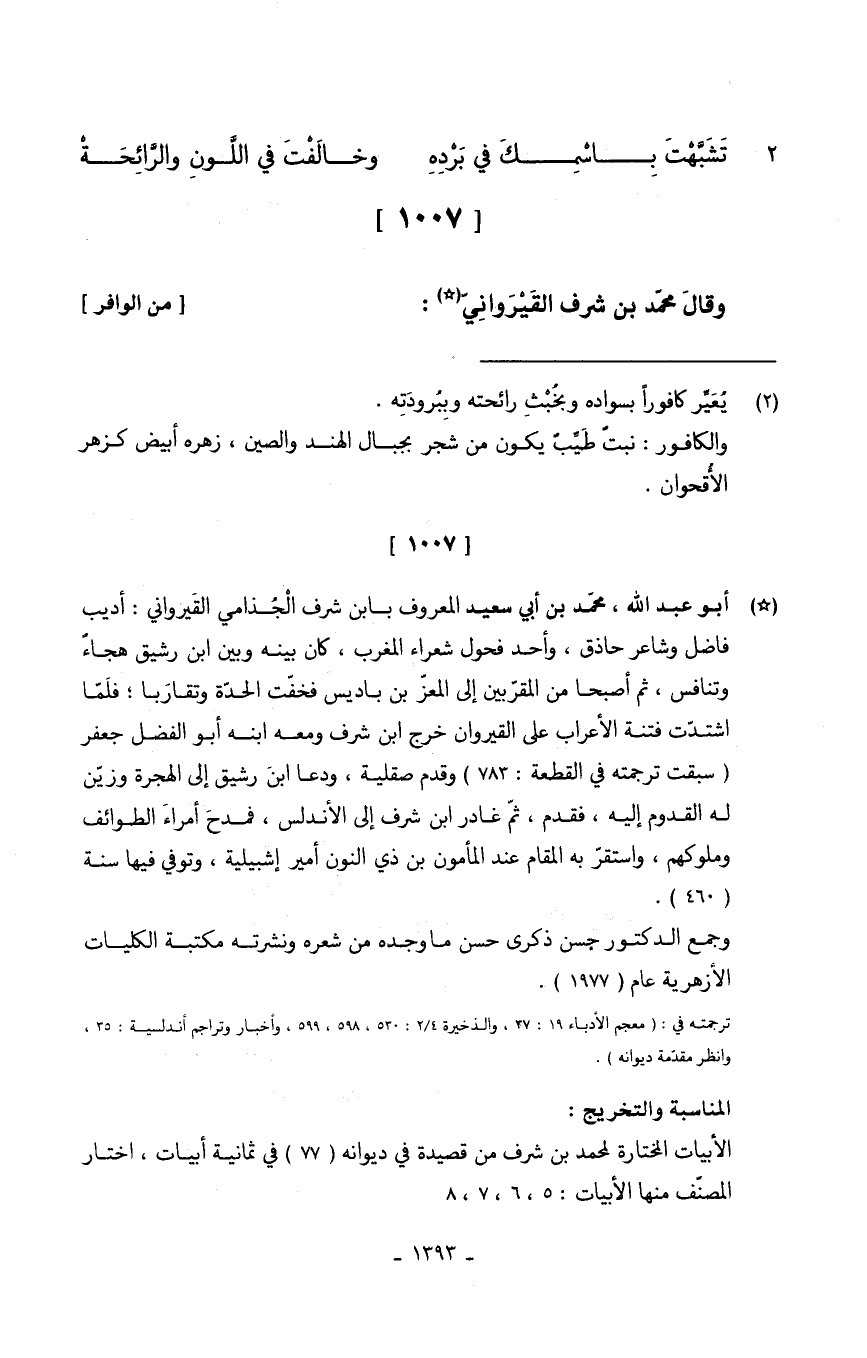 وقالَ محمدّ بن شرف القَيْرَوانِيَ // (من الوافر) //