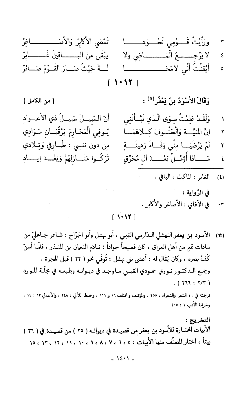 وَقَالَ الأسْوَدُ بنُ يَعْفُر // (من الْكَامِل) 1.