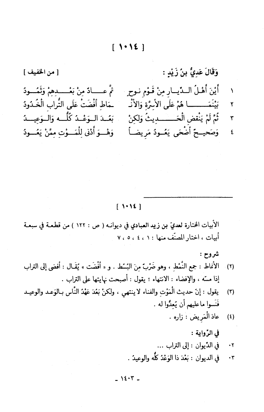 وَقَالًَ عَدِيُّ بنُ زَيْدٍ // (من الْخَفِيف) // 1.