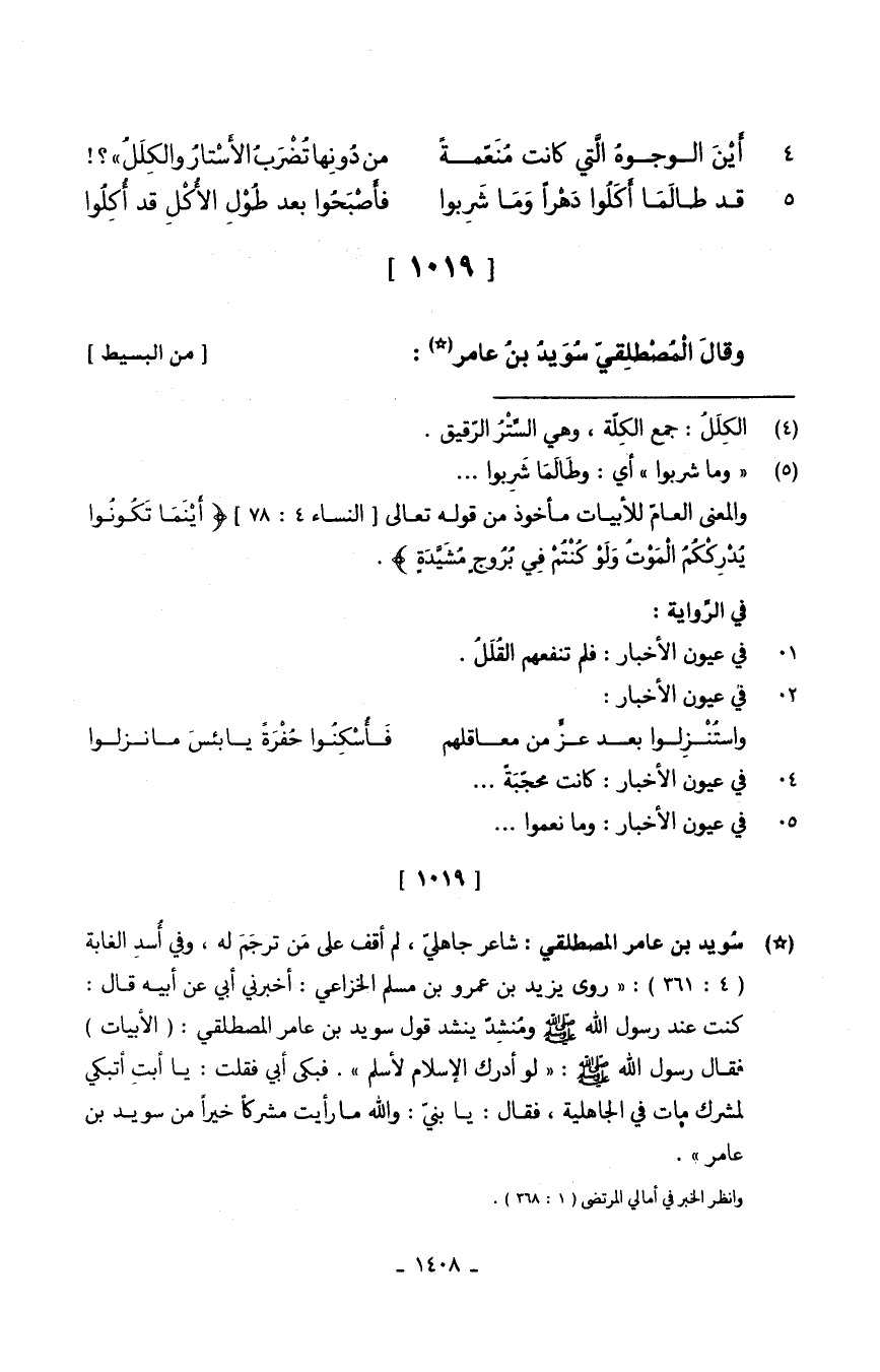 // [1019] // وقالَ الْمُصْطِلقيّ سُوَيدُ بنُ عَامر // (من الْبَسِيط) //