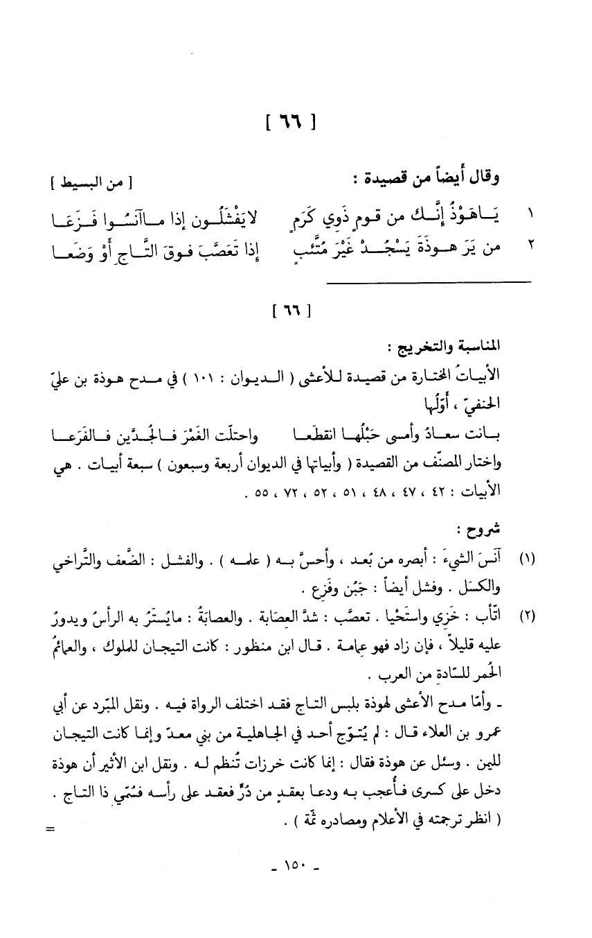 (يَا هوذ إِنَّك من قومٍ ذَوي كرم ... لَا يفشلون إِذا مَا آنسوا فَزعًا)