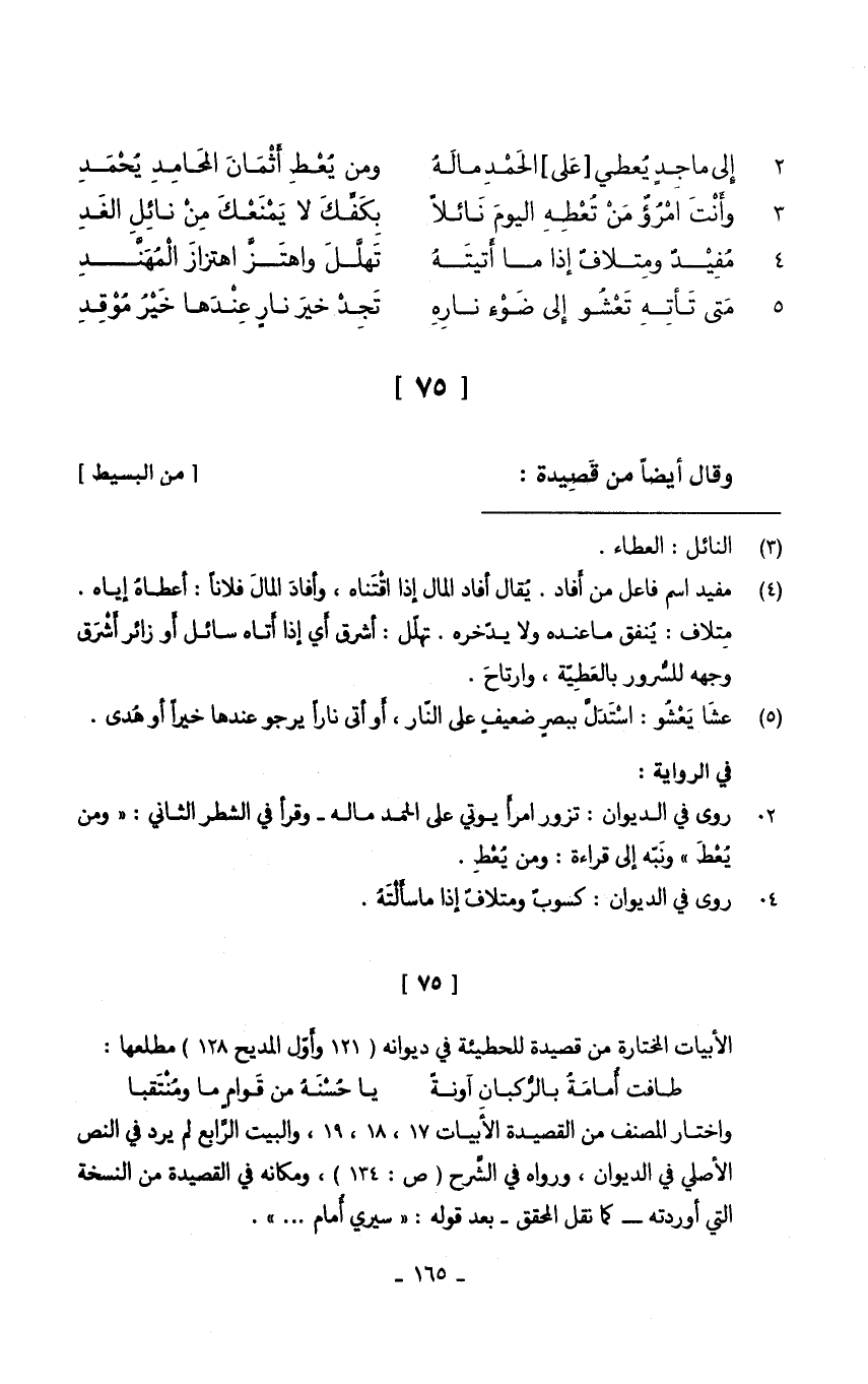 (إِلَى ماجدٍ يُعْطي على الْحَمد مَاله ... وَمن يُعْط أَثمَان المحامد يحمد)