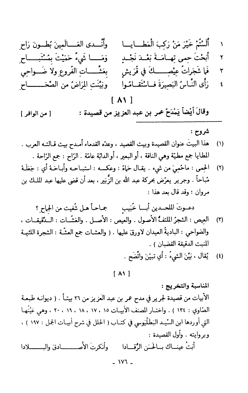 وَقَالَ أَيْضا يمدح عمر بن عبد الْعَزِيز من قصيدة // (من الوافر) //