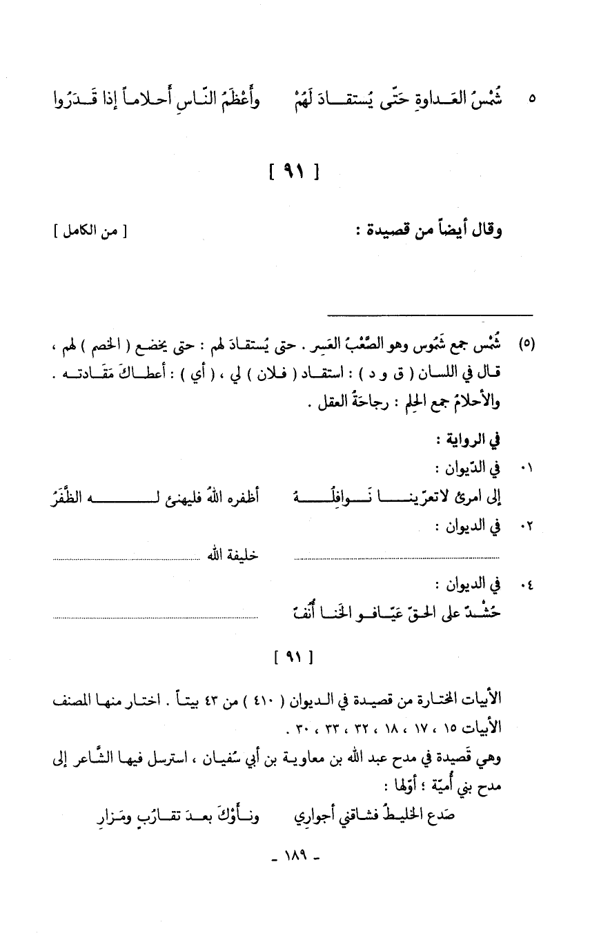 (شمس الغداوة حَتَّى يستقاد لَهُم ... وَأعظم النَّاس أحلاماً إِذا قدرُوا)