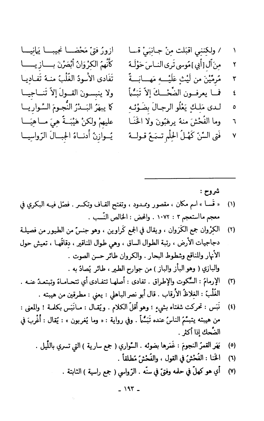 (من آل أبي مُوسَى ترى النَّاس حوله ... كَأَنَّهُمْ الكروان أبصرن بازيا)