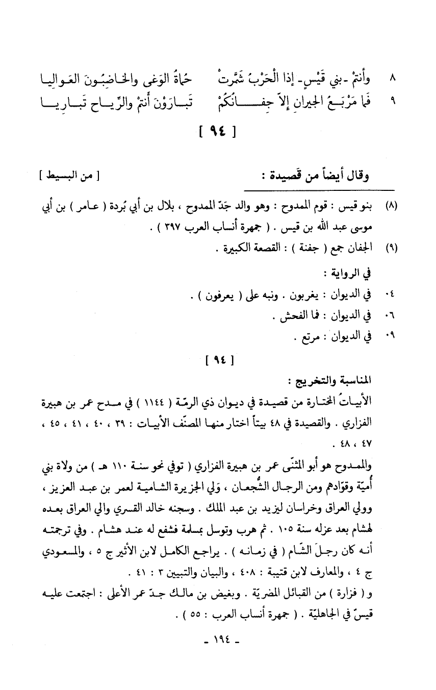 (وَأَنْتُم بني قيسٍ إِذا الْحَرْب شمرت ... حماة الوغى والخاضبون العواليا)