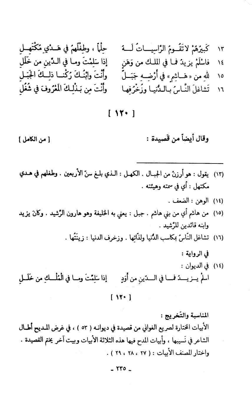 (كَبِيرهمْ لَا تقوم الراسيات لَهُ ... حلماً وطفلهم فِي هدي مكتهل)