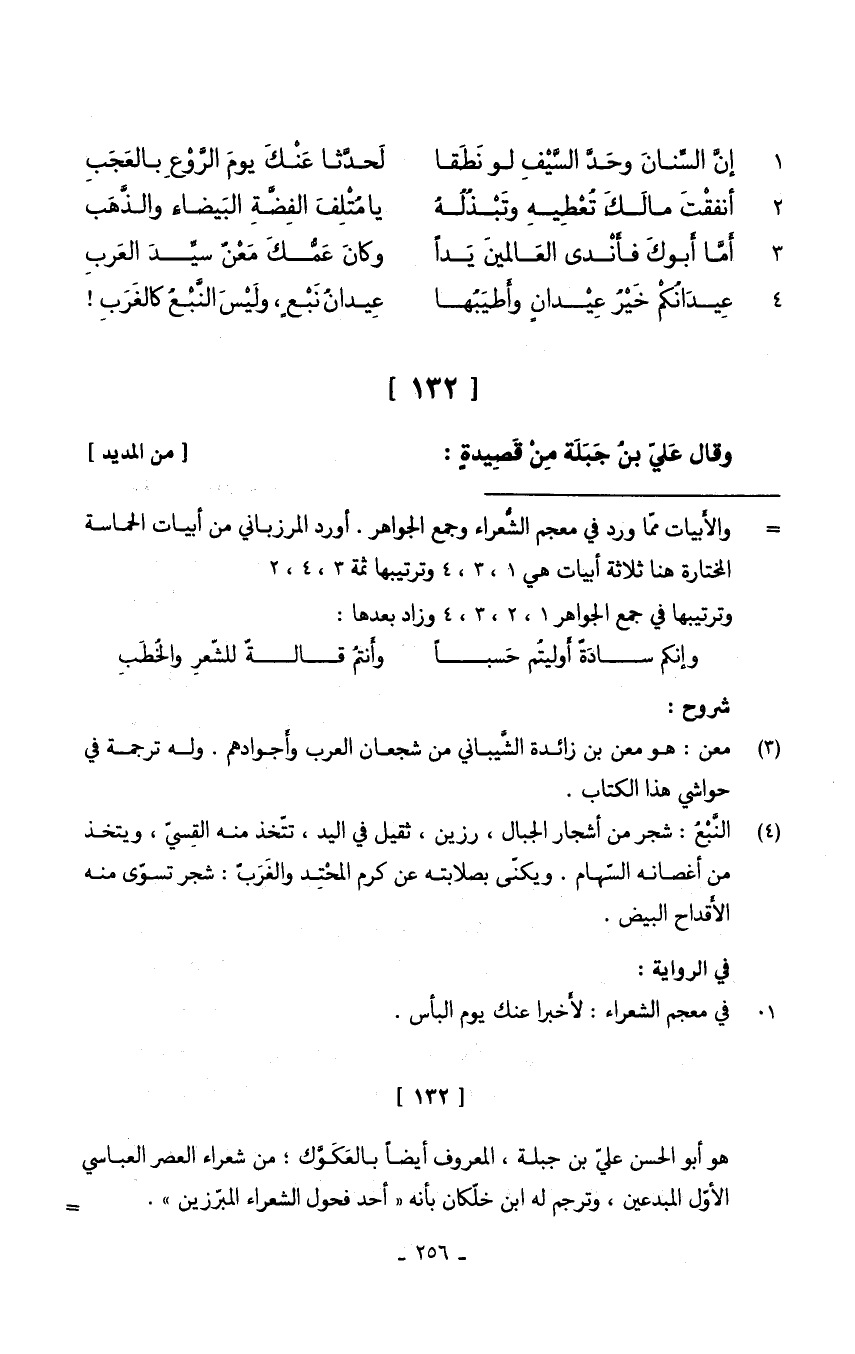 (إِن السنان وحد السَّيْف لَو نطقا ... لحدثا عَنْك يَوْم الروع بالعجب)