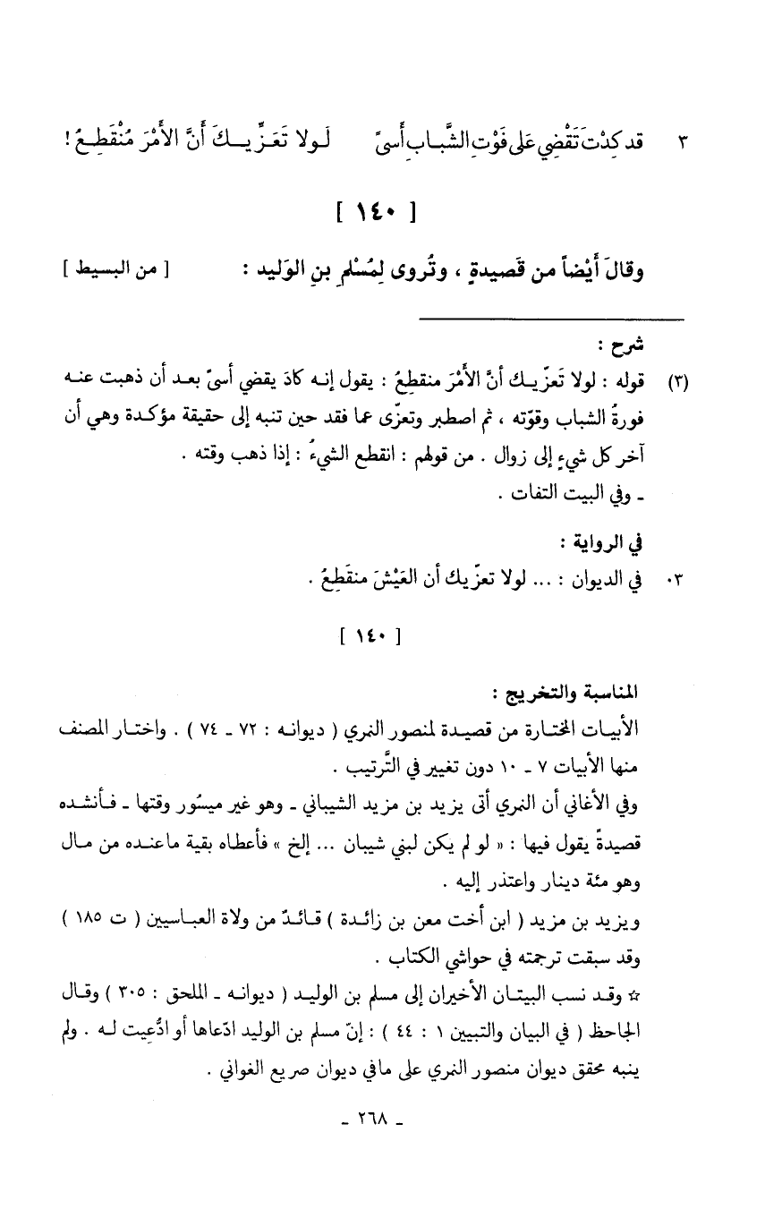 (قد كدت تقضي على فَوت الشَّبَاب أسىً ... لَوْلَا تعزيك أَن الْأَمر مُنْقَطع)